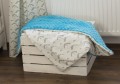 Kocyk wykonany jest z wysokogatunkowej bawełny oraz turkusowego minky. W środku znajduje się włóknina silikonowa, dzięki której kocyk zapewnia ciepło.