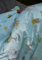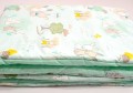 Kocyk jest dwustronny: z jednej strony wysokogatunkowa bawełna w przepiękne wzory a z drugiej miękka, turkusowa dzianina.