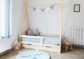 Łóżko tipi to wspaniałe miejsce do zabawy i odpoczynku dla dziecka. Wyjątkowa konstrukcja drewnianej ramy w kształcie domku sprawi, że Twój maluch chętnie będzie wymyślał nowe zabawy i spędzał czas w domku w ciągu dnia. Nocą łóżko zapewni mu spokojny sen, podczas którego nabierze energii na kolejny dzień.