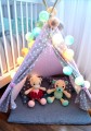 Mata na podłogę do małego tipi to doskonałe uzupełnienie namiotu. Uszyta z dzianiny oraz bawełny dopasowanej do koloru namiotu. W środku znajduje się antyalergiczne wypełnienie, dzięki czemu mata jest miękka.