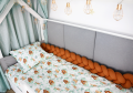Nasze ochraniacze tworzymy ręcznie na indywidualne zamówienie klienta, do każdego ochraniacza warkocza dołączamy tasiemki, które umożliwiają mocowanie do łóżeczka.