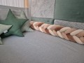 Nasze ochraniacze tworzymy ręcznie na indywidualne zamówienie klienta, do każdego ochraniacza warkocza dołączamy tasiemki, które umożliwiają mocowanie do łóżeczka.