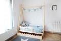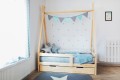 Łóżko dziecięce z drewnianą szufladą na pościel lub zabawki